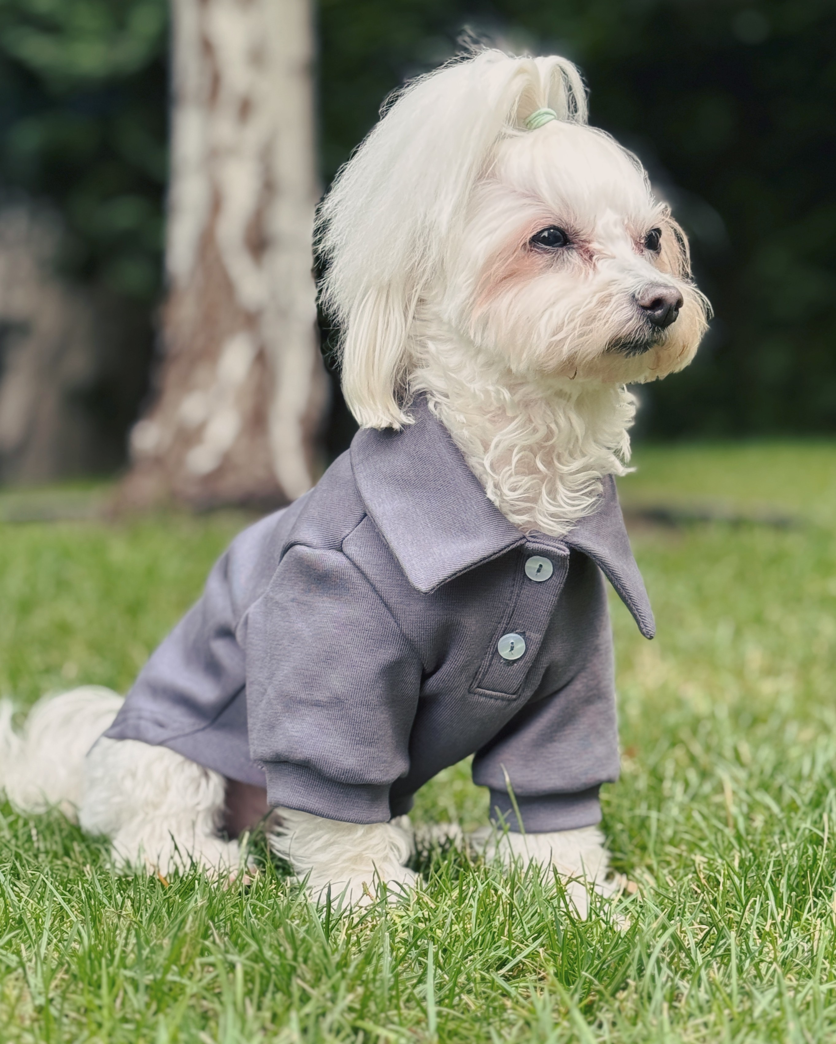Має охайний комірець який доповнений вирізом на ґудзиках